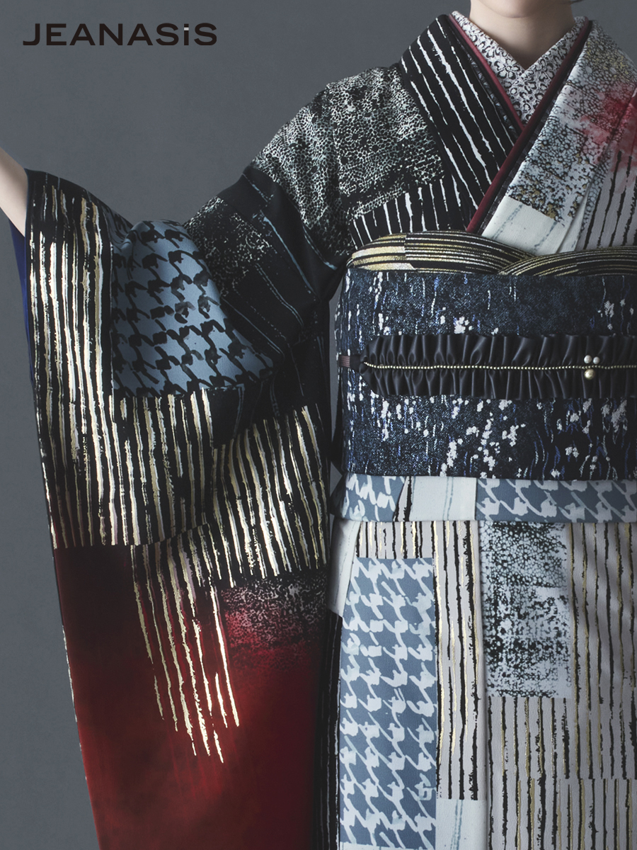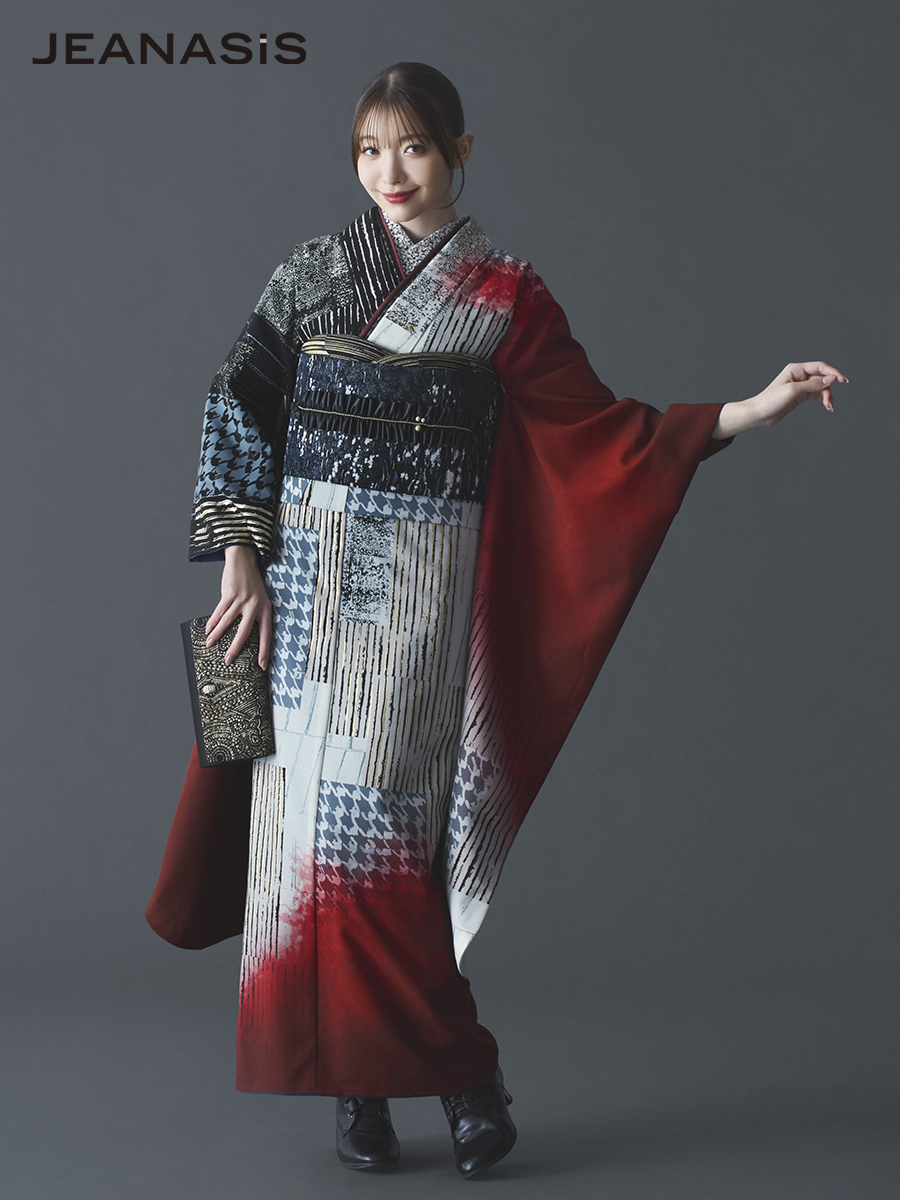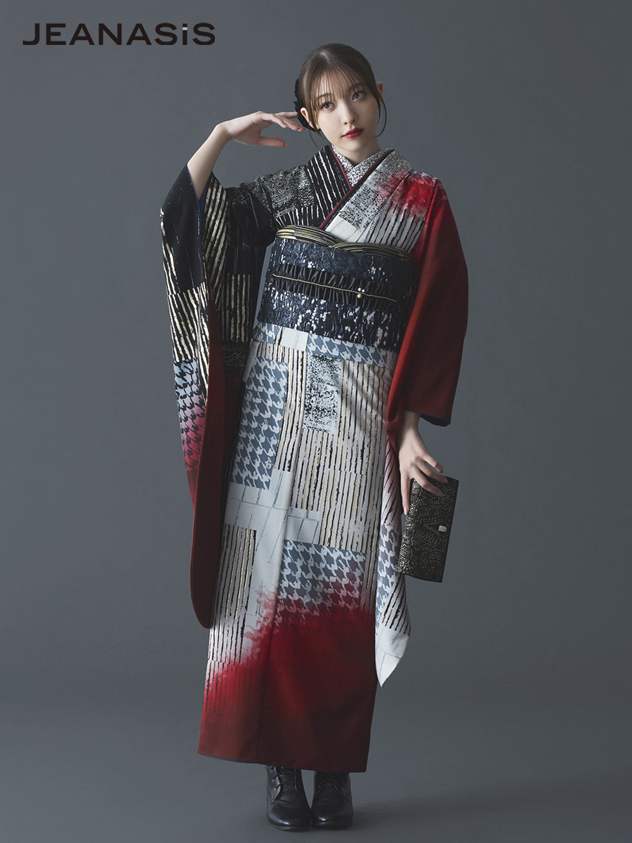 JEANASiS 振袖レンタルセット 千鳥パッチワーク(レッド)