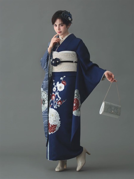 ※足袋は着付け道具セットに含まれます。 ※小物:伊達衿・帯揚げ・帯締めは同色でセットになります。 ※バッグと草履は同色でセットになります。 ※半衿・伊達衿についてはモデル着用のものとは異なる場合がございます。 ※モデル着用の半衿・バッグ・草履等には、セットに含まれていない別売りのものもございます。 髪飾りは別売りです。予めご了承ください。