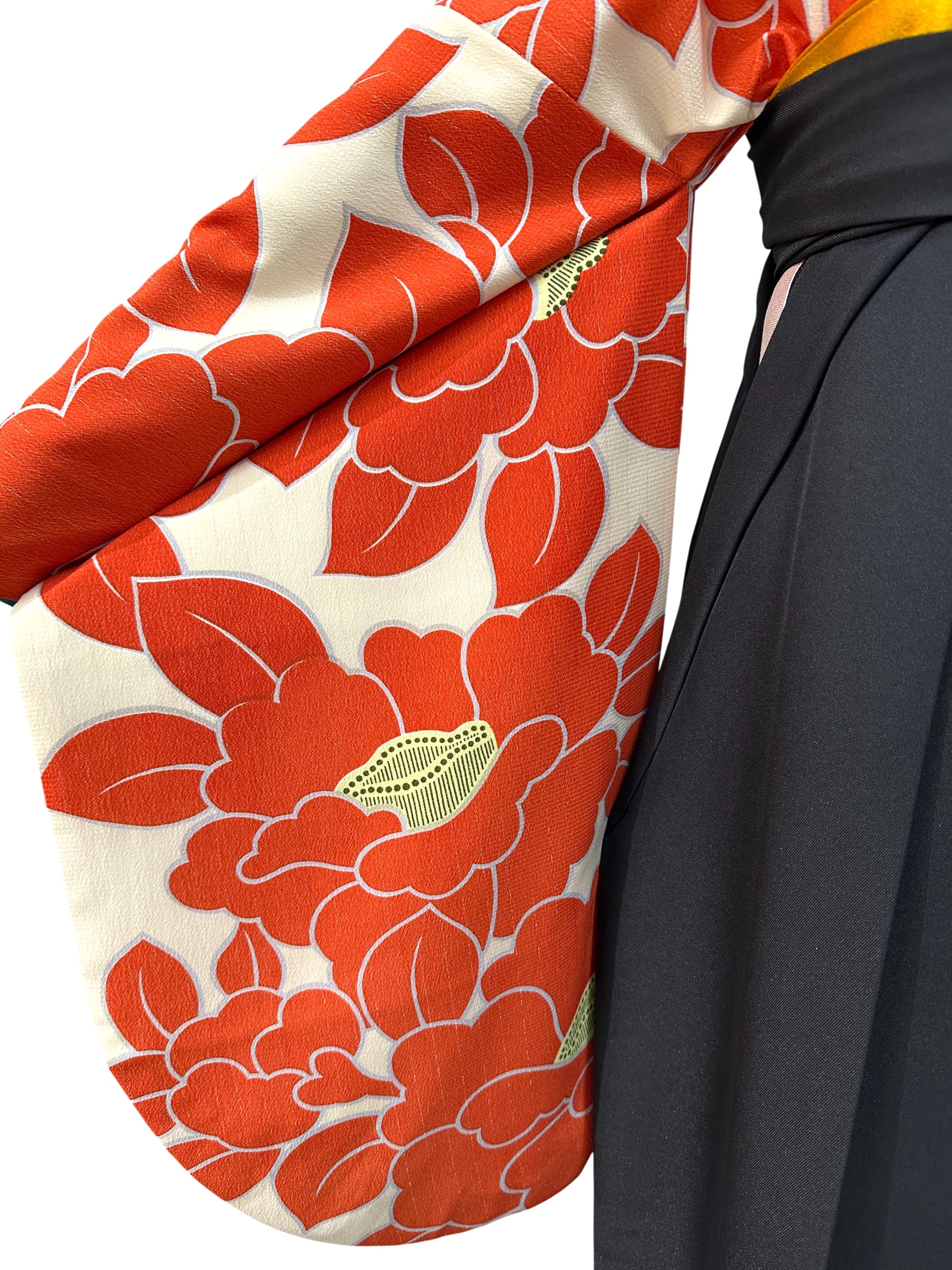 【半額SALE】袴 レンタル 卒業式 大学生 椿 オレンジ