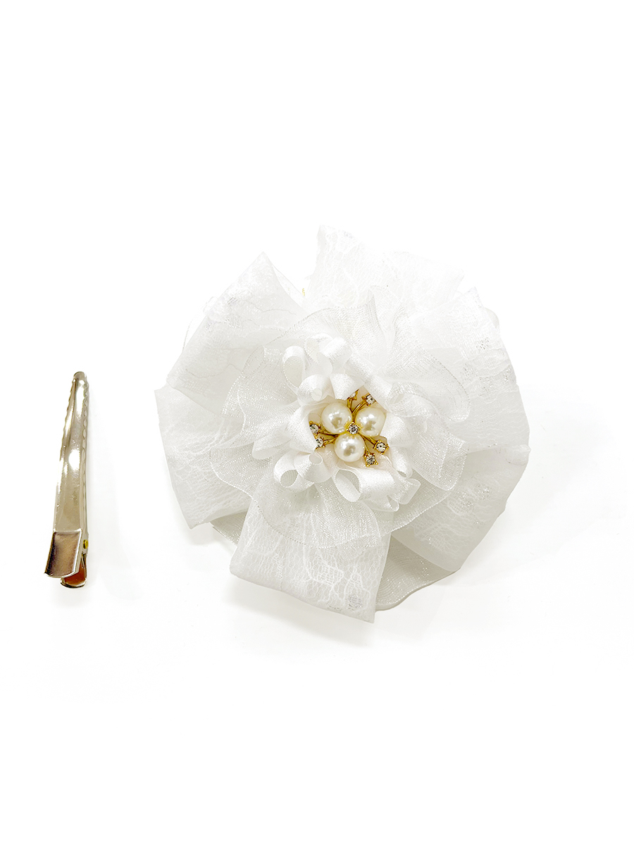髪飾り コサージュリボン2way ホワイト