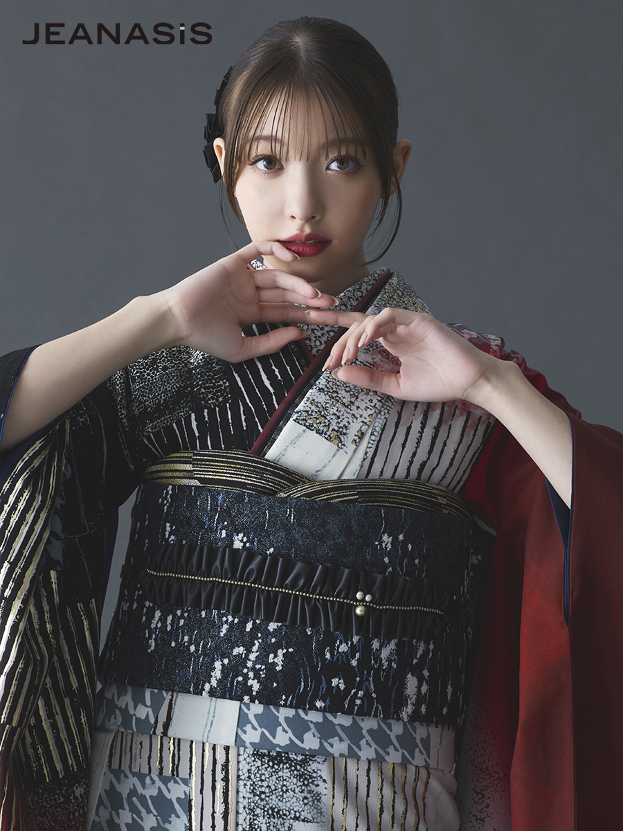 JEANASiS 振袖レンタルセット 千鳥パッチワーク(レッド)