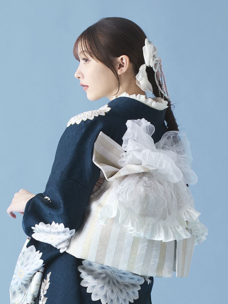 ※足袋は着付け道具セットに含まれます。 ※小物:伊達衿・帯揚げ・帯締めは同色でセットになります。 ※バッグと草履は同色でセットになります。 ※半衿・伊達衿についてはモデル着用のものとは異なる場合がございます。 ※モデル着用の半衿・バッグ・草履等には、セットに含まれていない別売りのものもございます。 髪飾りは別売りです。予めご了承ください。