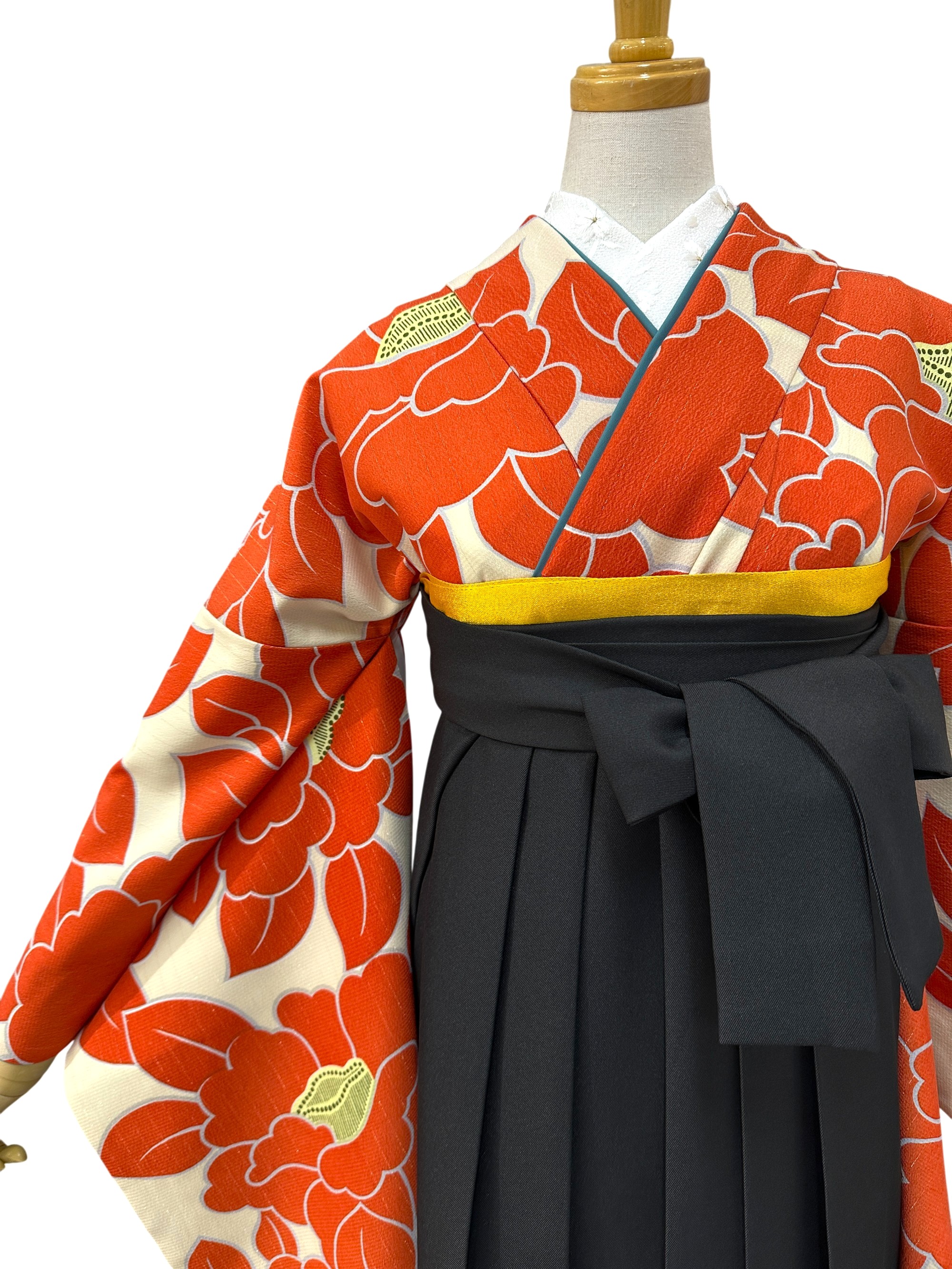 【半額SALE】袴 レンタル 卒業式 大学生 椿 オレンジ
